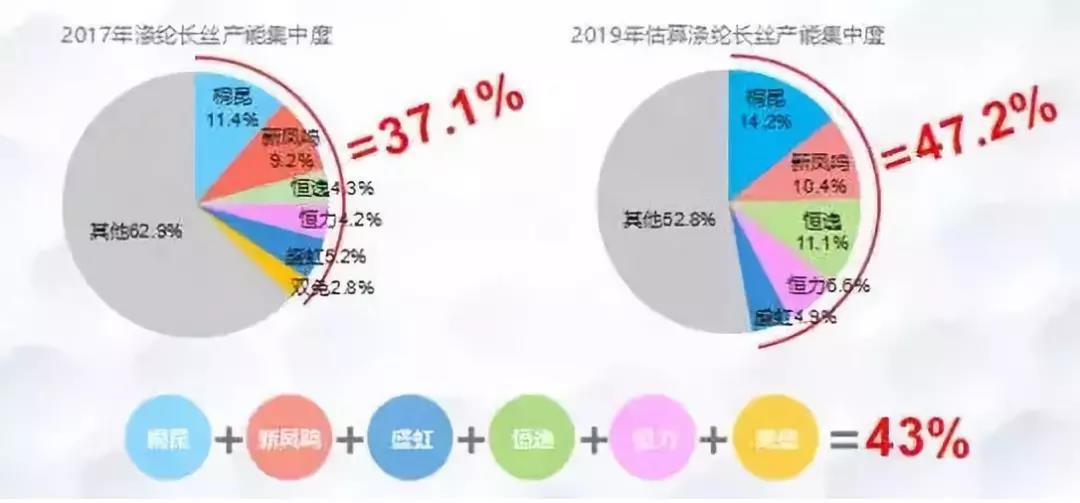 纵观纺织产业链,产业链寡头态势已经凸显。在PTA领域,已逐步形成包括恒力石化、福化集团、恒逸集团、荣盛石化、桐昆集团等巨头;而在上游炼化领域,恒力集团、荣盛集团、恒逸集团、桐昆集团、盛虹集团项目即将投产;在长丝领域,又是同样的这些巨头企业占据了43%的产能。