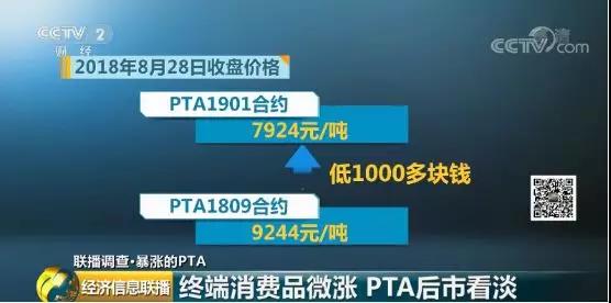 按照2月28日收盘价格,PTA1901合约价格在7924元/吨,也就是说2019年1月交割的合约比2018年9月交割的价格低了1000多元,也就是2018年9月之后,PTA价格或将回落。