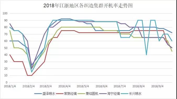 据调查了解,目前江浙地区织机开机率下降至6成左右,具体来看,盛泽喷水织机开机率在7成左右;长兴喷水织机开机率在6成左右;常熟经编、海宁经编开机率在5成左右;萧绍圆机开机率在4-5成,与上周相比,下跌了近10个百分点。