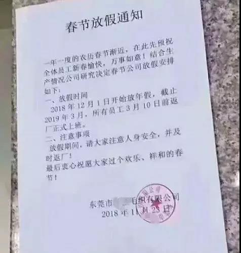 这家东莞的公司12月1日就开始放春节假了,你要是员工,会高兴吗?