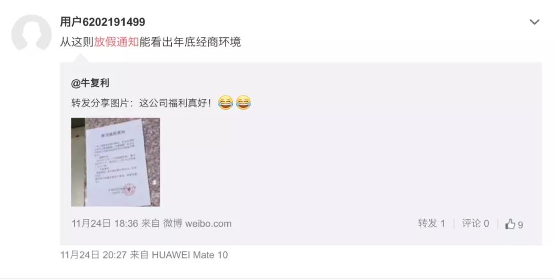 网友用户6202191499认为,从这则放假通知能看出年底经商环境!