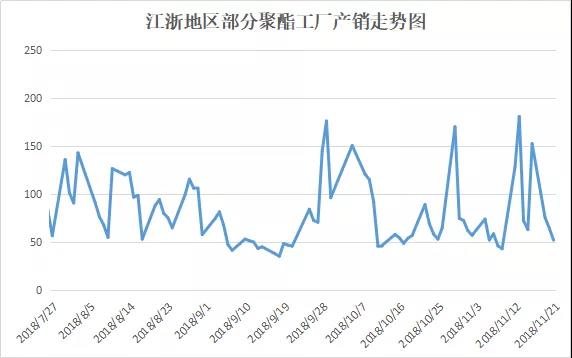 减产消息一出来,确实在短时间内刺激了下游的买气,产销再度破百。随着时间的推移,涤纶长丝市场价格走势再次趋于僵持,下游织造市场采购积极性被压制,11月19日,聚酯市场整体产销再度回落至5-8成水平。对此小编走访市场,采访了几位布老板,大部分布老板表示对于未来的行情捉摸不透,囤原料还是采取保守态度。