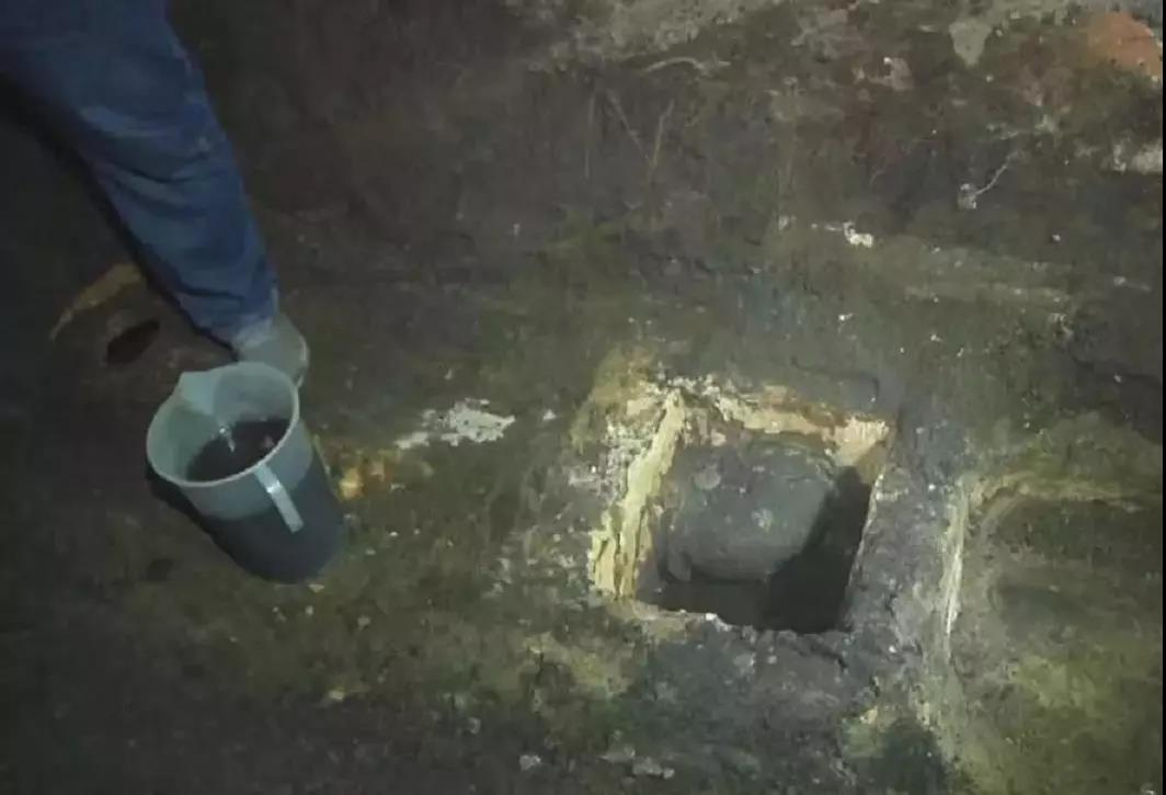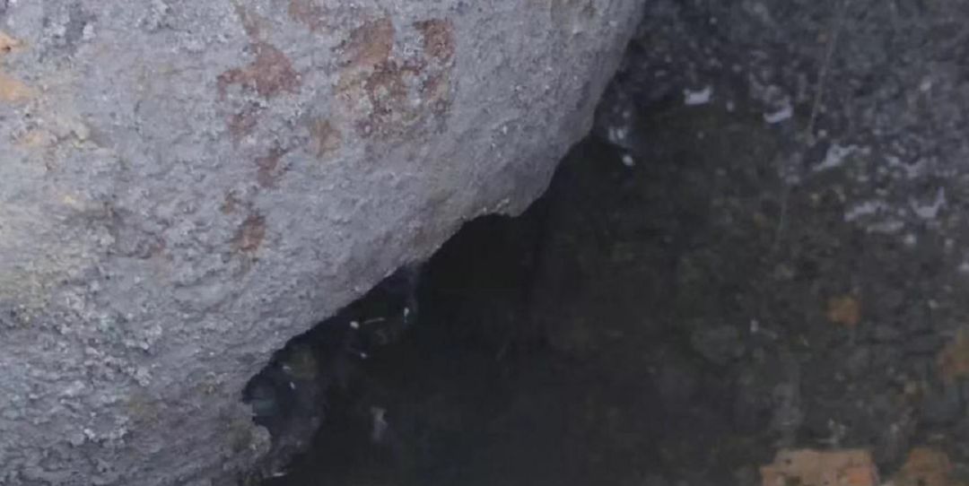 这条暗管就埋设在地下半米的地方,破开路面之后可以发现工厂里面的一根连通设备管道,按理来说管道应该是密封无漏的,产生的污水才能够通过连通管进入到污水处理设备中。但经营者故意在连通管挖了一个洞,使污水能够通过这个洞漏到排污暗管中,达到经营者偷排的目的。