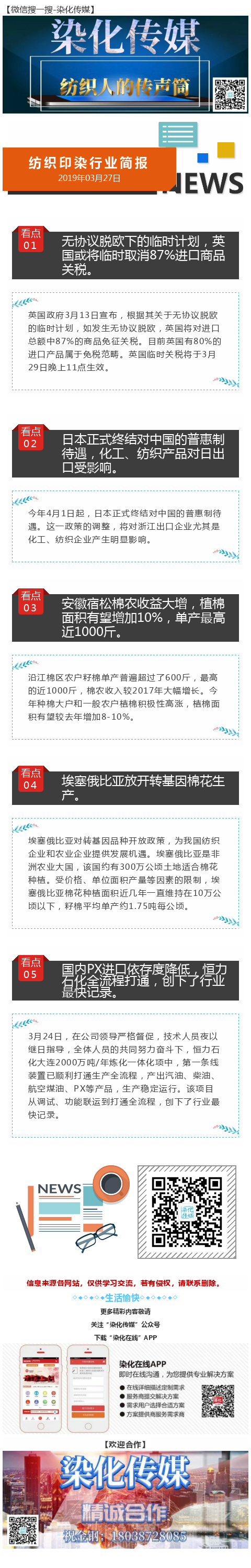 关键字:纺织、印染、简报点击:24736 发表时间:2019-03-26