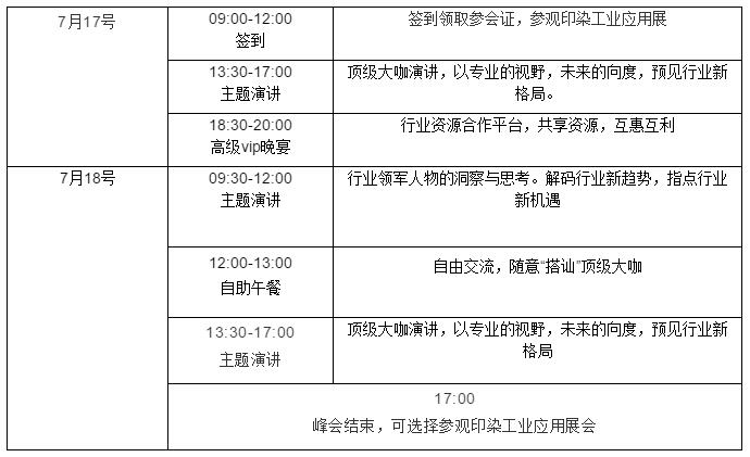 另外,本次峰会将于7.17日,DFA国际印染工业应用展同期举行,创新大会+创新展会的融合,一定能给企业带来更多精彩与收获!