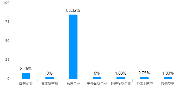 109家参与企业中,85.32%为私营企业,8.26%为国有企业。