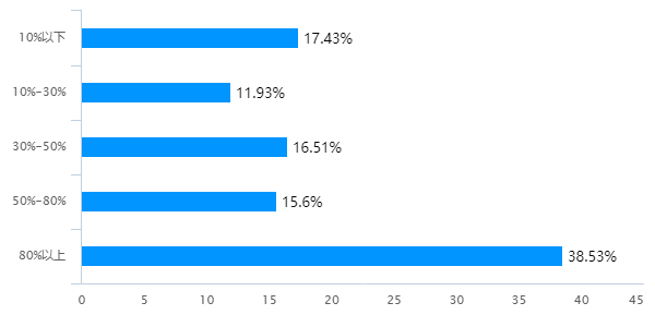 企业员工本地人(长期居住)比例达80%以上的企业占比最多,达38.53%。
