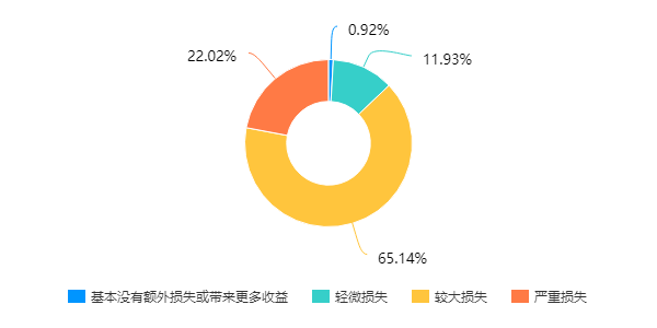 65.14%的企业认为本次疫情造成较大损失,22.02%的企业认为造成严重损失,仅0.92%的企业认为基本没有损失或带来更多收益。