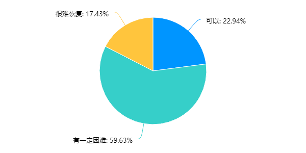 预计复工后在2个月之内恢复疫情前的产能效益水平的企业仅为22.94%,近60%的企业认为有一定困难,有17.43%的企业认为很难恢复。