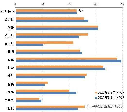 2020年以来,纺织行业资产负债率总体保持在60%以下的合理区间,呈现小幅上升态势。根据国家统计局数据,1~6月,全国3.3万户规模以上企业资产负债率为56.4%,与同批企业上年同期水平大致相当,较今年一季度略提升0.4个百分点。 纺织行业资产负债率并未出现明显升高,一方面与国家集中出台多项政策缓解中小微民营企业融资压力有关,另一方面也与当前市场需求不足,导致企业投资规模下滑、负债需求减少有关。
