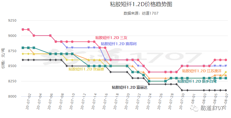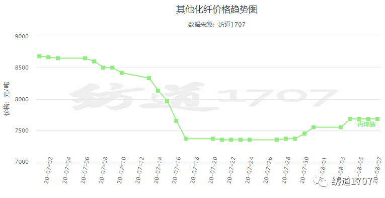 丙烯腈市场价格坚挺,原料丙烯价格高位,丙烯腈工厂在低库存及高成本支撑下,维持限产挺价节奏,且仍有进一步推涨意向,另外业者对9月份需求存一定预期,现货市场报盘偏向高端,但下游需求增长空间有限,尤其是腈纶开机率将有下降,预计丙烯腈上涨幅度有限。腈纶短纤市场价格延续平稳,厂商报价整体无波动,但行业开机率有所下降,由于下游需求尚未启动,部分厂商销售不畅致库存升高,因此降低开工负荷,另外原料丙烯腈价格小涨,腈纶盈利空间再次压缩,工厂生产积极性削弱,同时终端需求持续疲软,纱线行情平平,预计腈纶价格难有变化。