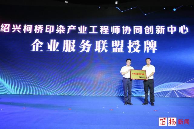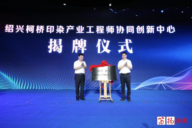 浙江省委人才工作领导小组办公室专职副主任张旭明、柯桥区委书记沈志江,共同为绍兴柯桥印染产业工程师协同创新中心揭牌。
