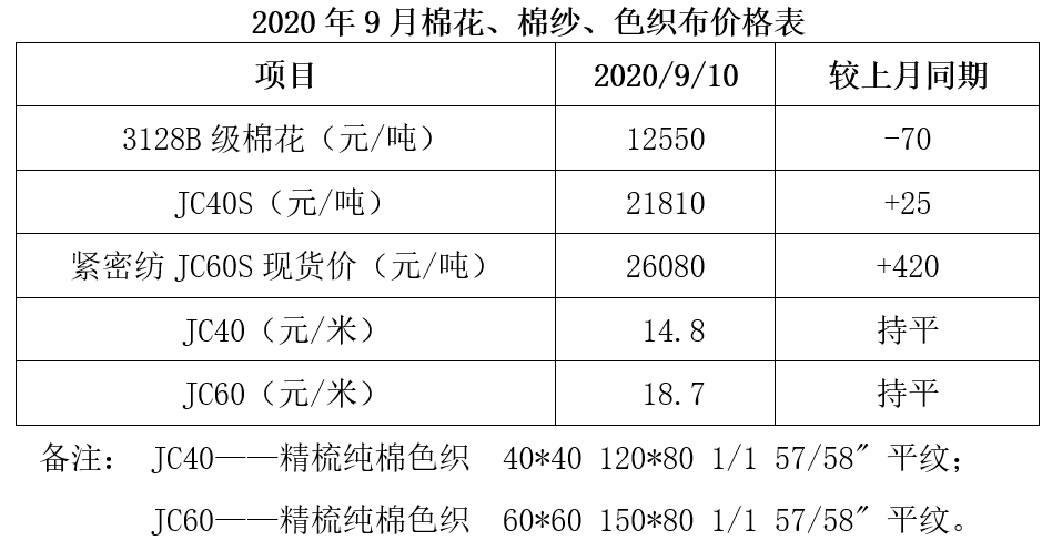 近一个月以来,国内棉花期、现货价格先涨后跌;纱线市场略有好转,交易逐渐增加,高支纯棉纱价格上涨明显;色织市场整体有所升温,订单增加,开机率逐渐回升,产品价格基本持稳。