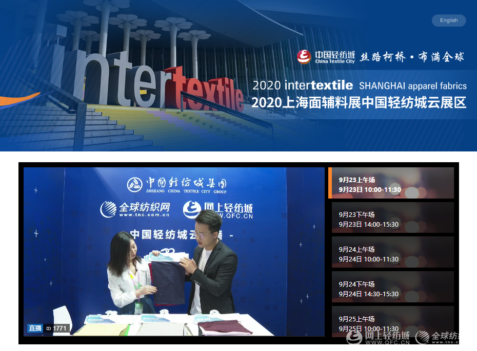 在3天展期内,直播间将陆续开启十余场企业直播,采购商不管在上海展展馆内还是未能到展,均可随时随地登录轻纺城云展区来观看直播内容,远程与展商企业见面获取面料信息。