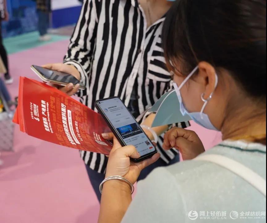 与往期不同的是,今年的轻纺城优选企业展厅格外热闹,展团企业纷纷带着面料走进设置在展厅内的云直播间开启面料直播,在整个会场也能够看到,不少采购商拿起手机扫码,登录“2020上海面辅料展中国轻纺城云展区”,线上看面料,看直播,与展商实时互动。