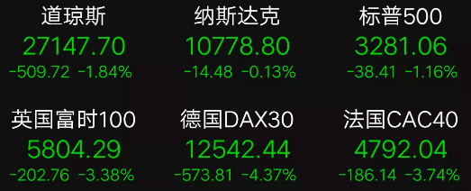 21日晚间,欧美股市遭遇猛烈抛售,金价油价也持续下跌!