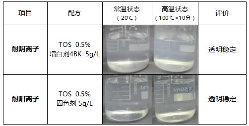 ⑨、弱阴离子体系,配伍性出色,可能与大多数纺织助剂相容;