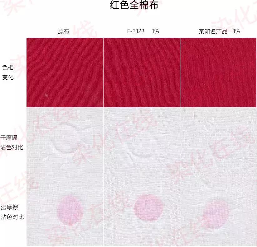 通过以下测试对比可以看出,牢度提升剂FUNCTEX(菲克斯)F-3123在