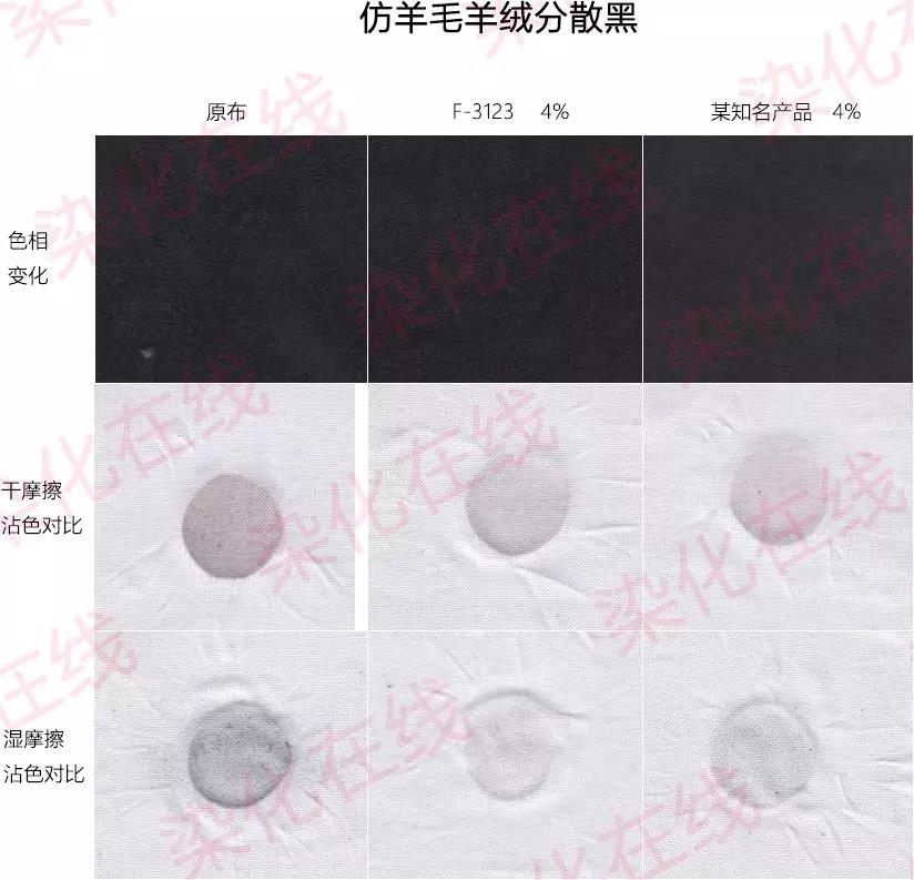2)敏感色的干湿擦牢度与某知名产品相当;