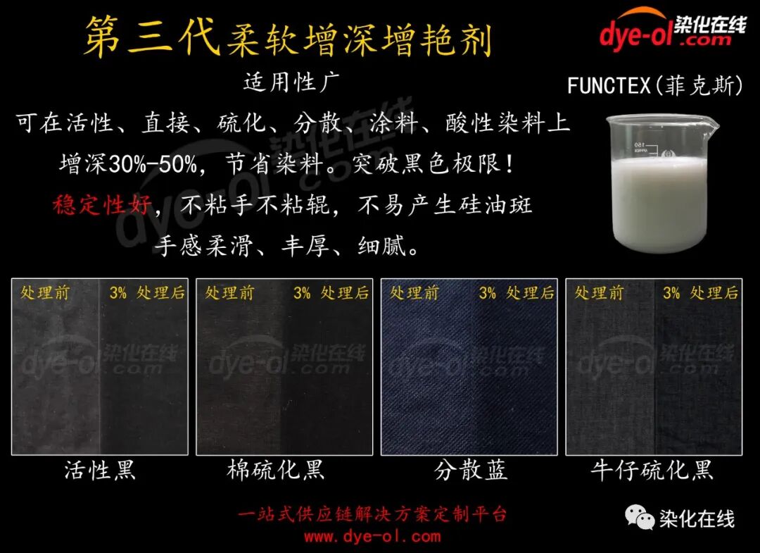 出缸前过最后一道水同时加即可,稳定性好,少量染色残留物也不怕)