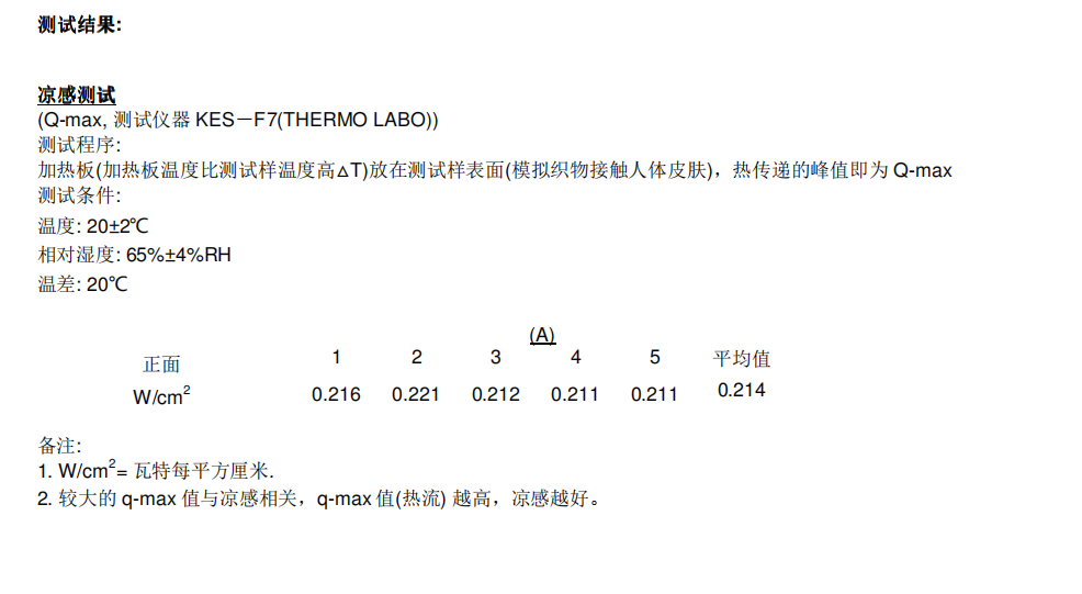 目前国内暂时还没有发布凉感测试标准,不过2016年全国纺织品标委会和全国纺织品标委会基础标准分会上已经审定通过了《纺织品接触瞬间凉感性能的检测和评价》(国标)。也就是此标准发布也是指日可待。我们可以先参考下2010年10月,台湾纺织产业综合研究所「机能性暨产业用纺织品认证与验证评议委员会」已制定的「织物瞬间凉感验证规范」(FTTS-FA-019)产业标准,供业界参考。