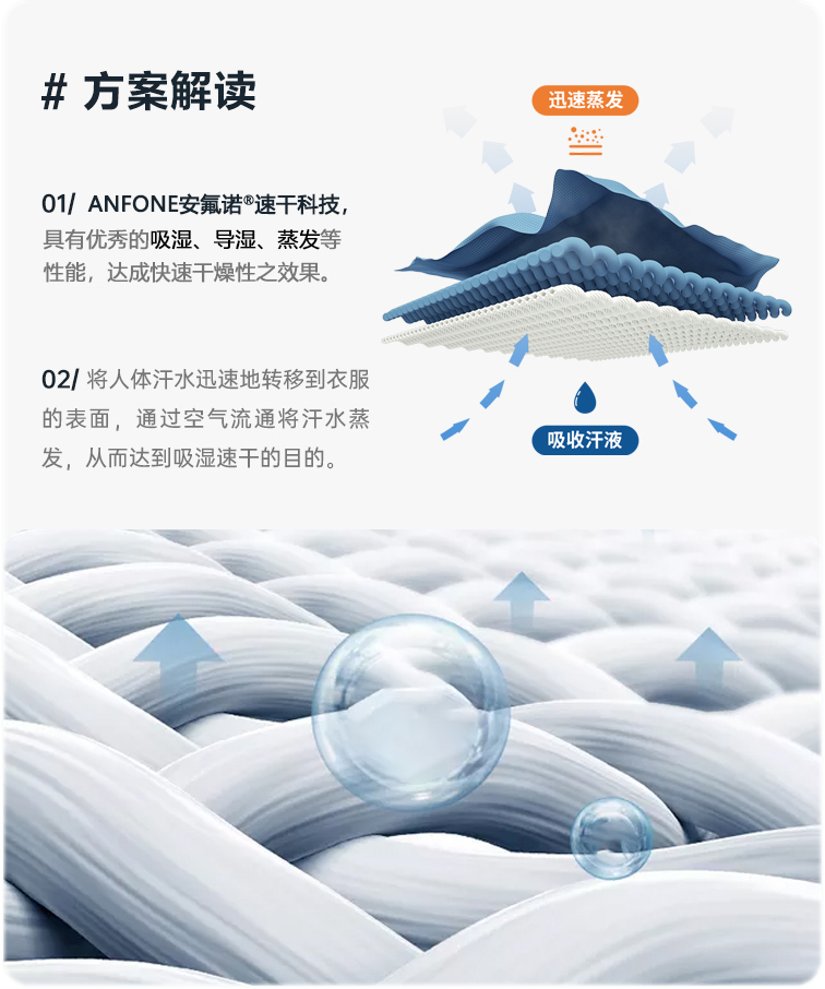根据市面上运动衫的高端需求,现已推出新款吸湿速干整理剂ANFONE安氟诺