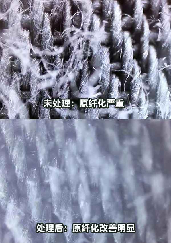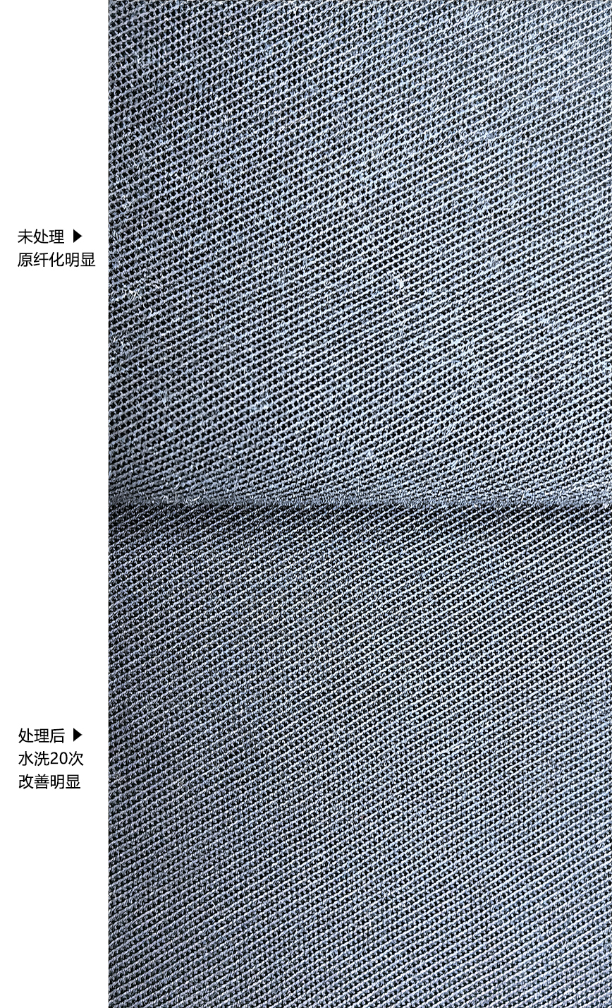 经过处理后的面料,原纤化问题改善明显。(下附电镜图)