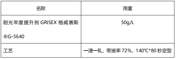 日晒牢度提升剂是一种用于提高纺织品耐日晒性能的化学品,它通过吸收和散射紫外线来防止织物因紫外线照射而发生褪色或损坏。依照客户指定标准AATCC 16.3-2020的要求,通过筛选开发,我们为客户特制定此方案,供有相似需求的面料品牌企业参考。