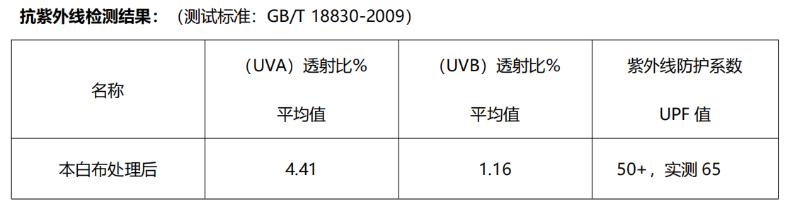 CVC本白平纹布做抗紫外线,国标要求UPF50+UVA/UVB<5%