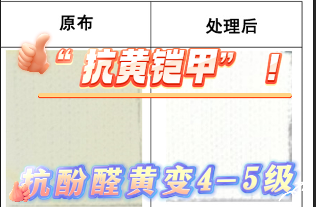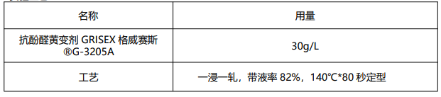 经过抗酚醛黄变剂 GRISEX 格威赛斯®G-3205A 处理后酚醛能做到 4-5 级。