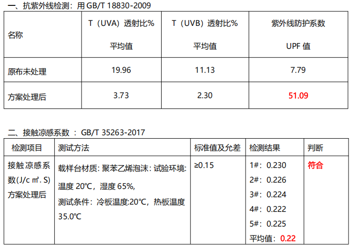1)经过处理后的面料,凉感与抗紫外线要求符合标准。抗菌,消臭功能以第三方检测为准;