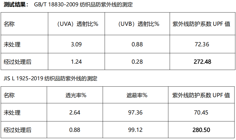 1、抗紫外线 UPF>50+,UVA透射比<5%,UVB透射比<5%