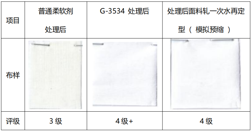 今天,我们推出抗酚醛 4-4.5 级+手感一浴的方案:抗酚醛黄变与卓越手感,真正意义上的一浴达成。 它直击行业痛点,将复杂留给自己,将简约与稳定交付于您。经其专业处理后的棉氨面料,抗酚醛黄变等级4级及以上。这并非实验室的静态理想数据,而是经受了严格模拟预缩(轧水后再定型)考验的坚实承诺——在模拟真实加工环节后,面料依然能稳稳保持4级的抗黄变表现。