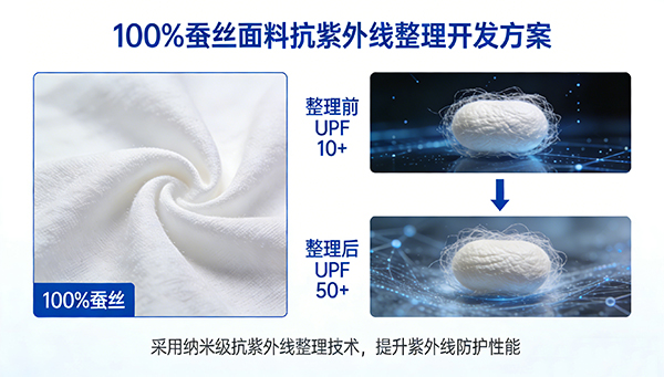100%蚕丝面料,抗紫外线整理UPF从10+做到50+开发方案