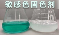 盐素测试耐100ppm氯水,提高纤维素纤维用活性染料染色与印花时的耐氯漂牢度。效果比CF-2更好。JIS L 0884 盐素处理水色牢度测试3-4级,耐洗。