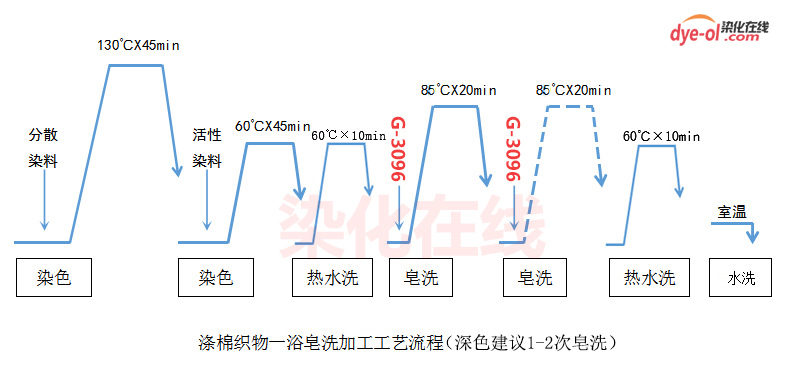 涤棉混纺一浴皂洗,免还原清洗改善牢度方案: